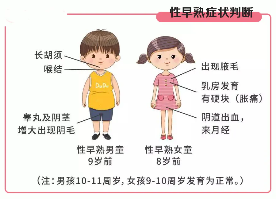 性早熟是指男童在9歲前,女童在8歲前呈現(xiàn)第二性征。